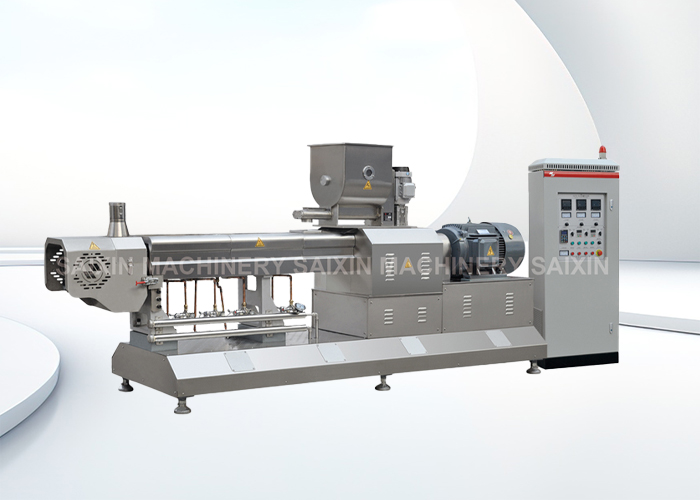 The twin-screw extruder manufactured by Ji'nan Saixin Machinery Co., Ltd. represents advanced extrusion technology developed through years of research in expansion processes to meet the growing demands of food and related industries. Produced in compliance with national quality standards and featuring key imported components, this equipment ensures reliable performance and durability. The extruder's control system employs PLC-based automation, allowing precise adjustment of parameters such as product configuration, moisture content, operating speed, and temperature to suit various processing needs. Its operation is both straightforward and dependable, earning it a recommendation from the National Food and Packaging Association of the Ministry of Mechanical and Electrical Engineering as high-quality food machinery.