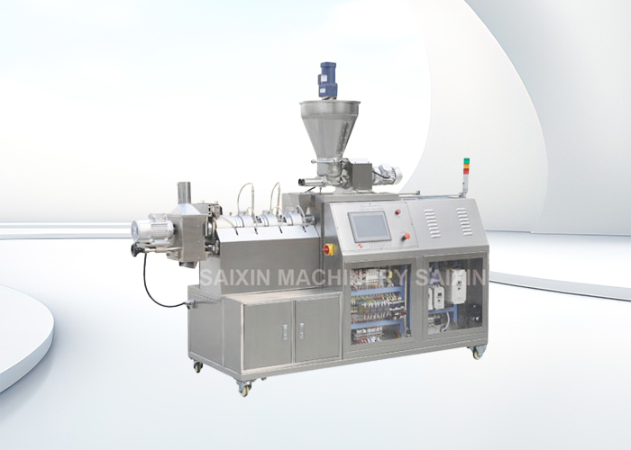 The teaching experimental extruder developed by Jinan Saixin Machinery Co., Ltd. is a compact, multi-functional system that integrates the operational principles of both single and twin-screw extruders. It enables precise, real-time adjustment and feedback of key extrusion parameters—including moisture, pressure, temperature, and rotation speed—with all data displayed digitally.
